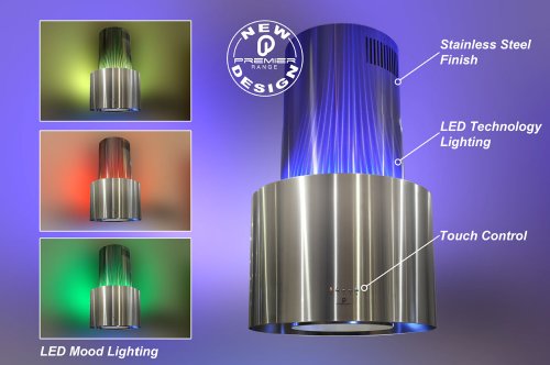 60cm Round Cooker Hood In Stainless Steel Finish With Breathtaking Mood Lights. This Stunning Steel Hood Has Been Designed Especially For Islands. Comes With Touch Sensitive Designer Control Panel. Can Be Recirculating With Carbon Filters Or Externally Vented. Dimensions: (W)520mm x(D)370mm x(H) up to 1000mm [ MORE DETAIL ]Premier Range 60cm Round Island Hood With Mood Lighting A94.6s features :