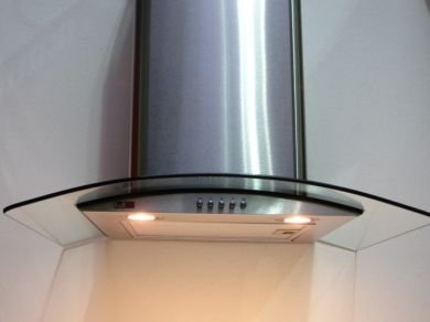 - 60cm Curved Glass Chimney Hood with a MASSIVE extraction capacity of 850m³/hr